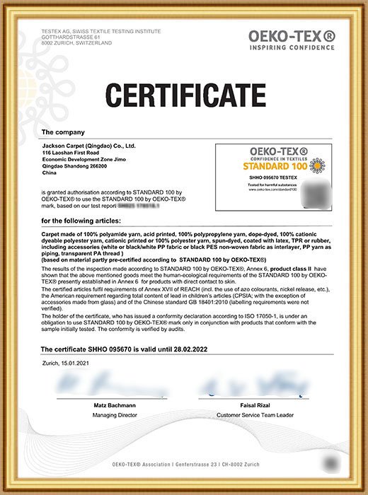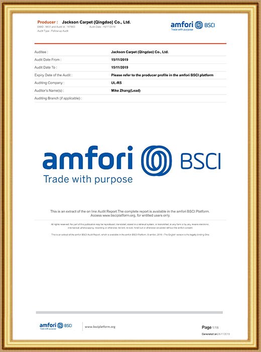 Jackson carpet (Qingdao) Co., Ltd. was founded in 1998 in China by Singapore Jackson group which started carpet business in Singapore since 1975. It is a professional enterprise for producing and selling carpets.