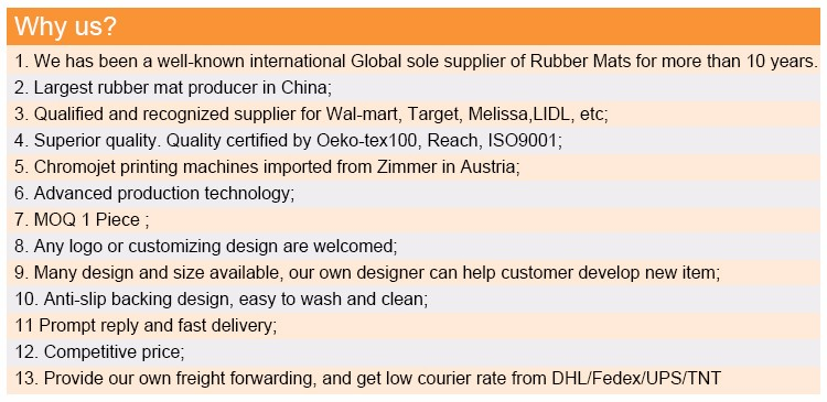 Backing materials could be Latex, TPR , rubber, polyester cotton, Action back or customized.